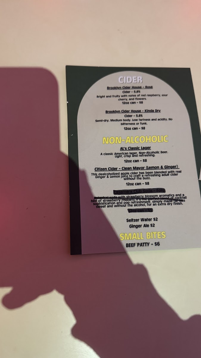 The menu offers a combination of cafe and wine bar selections suitable for different times of the day. During daylight hours, the focus is on a variety of coffee drinks and related beverages, catering to individuals seeking coffee breaks or light refreshment. In the evening, the menu shifts towards a wine bar experience with a rotating wine list and a selection of canned beers available. Light food options or snacks may be offered to complement the drinks, though detailed food items are not specified.
