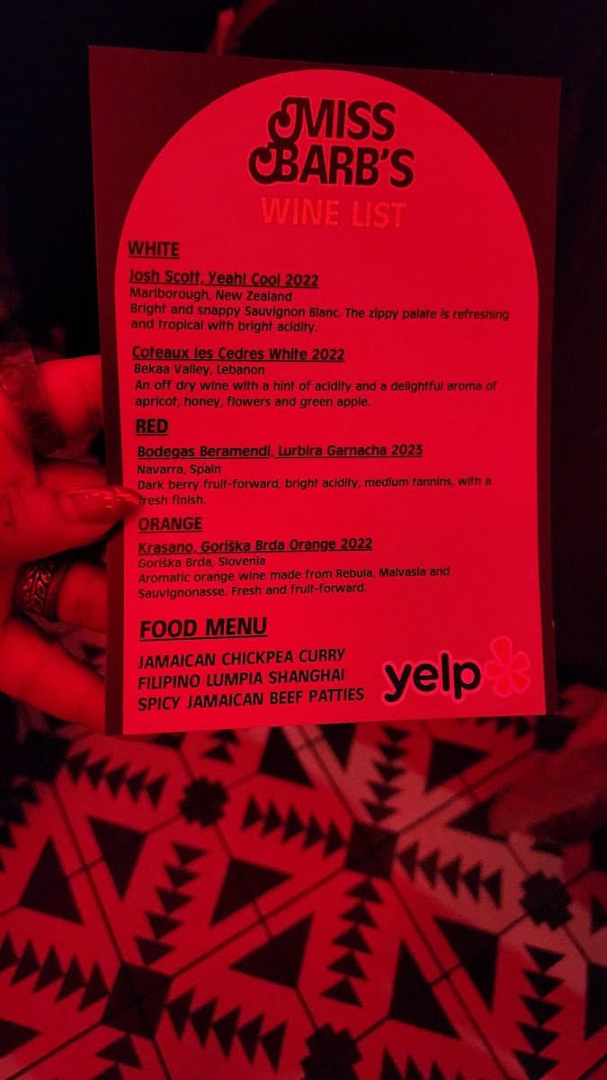 Miss Barb's Menu